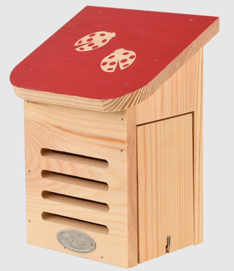 Lieveheersbeestjes zijn, naast een plezier om naar te kijken, zeer nuttig gasten in de tuin. Een volwassen lieveheersbeestje eet wel 100 bladluizen per dag, wat goede reden is om het hen naar de zin te maken in je tuin. Dit huisje biedt onderdak en beschutting. Het huisje is zo ontworpen dat lieveheersbeestjes hier gemakkelijk toegang tot hebben en worden concurrenten en roofdiertjes buiten gehouden.