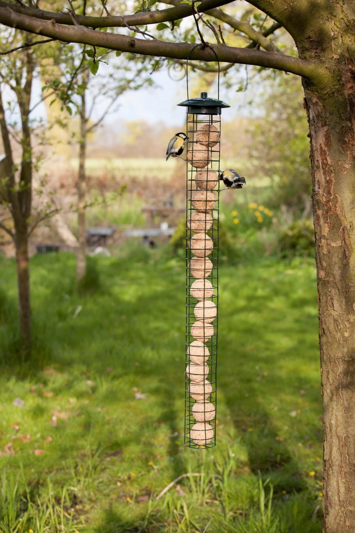 Deze reuze vetbollenautomaat biedt plaats aan 15 vetbollen. Door de open structuur is het voor vogels mogelijk om gemakkelijk en van alle kanten bij de vetbollen te komen. Hierdoor kunnen natuurlijk ook meerdere vogels tegelijkertijd van de vetbollen genieten. Door de dakconstructie is de automaat eenvoudig te vullen.