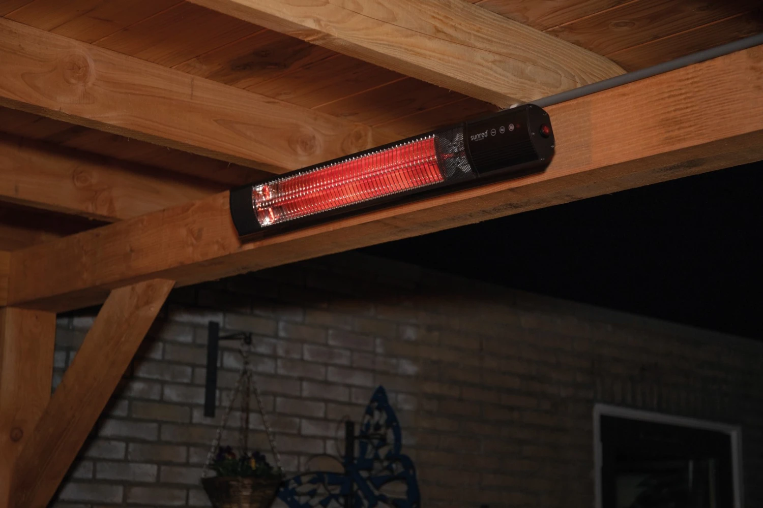 Nieuw in de collectie van Sunred: de krachtige Royal Diamond Dark line. Deze serie wandmodellen beschikken over een nieuw rose gold carbon element. Een nieuwe manier van verwarmen, want het carbon fibre verwarmingselement wordt extra krachtig door de reflectie van een laagje rosé bladgoud. Bovendien zorgt de ultra low glare technology er voor dat deze modellen een zachte gloed hebben, zo blijft het ook sfeervol. Het strakke en zwarte design geeft bovendien ook direct een nette look aan je tuin of terras.